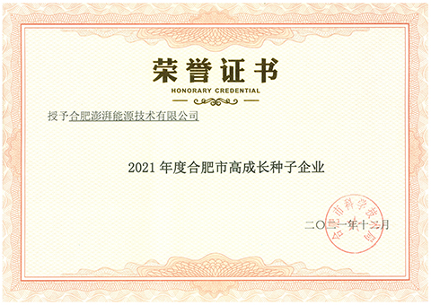 • 2021 Hefei City High Growth Seed Enterprises